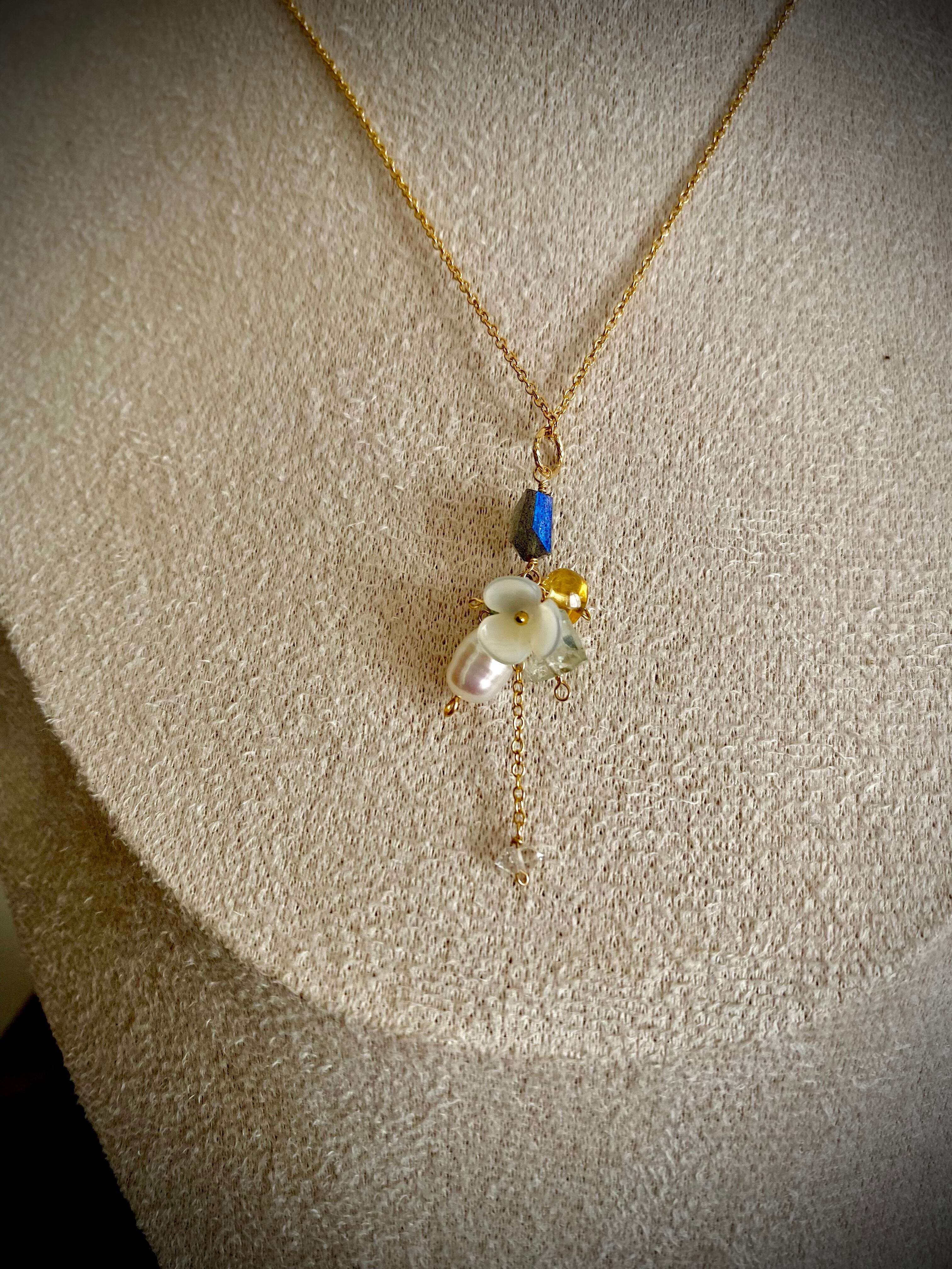 /#シトリン#トルマリン#ラブラドライト#ホワイトシェル#淡水パール#グリーンアメジスト#ハーキマーダイヤモンド
